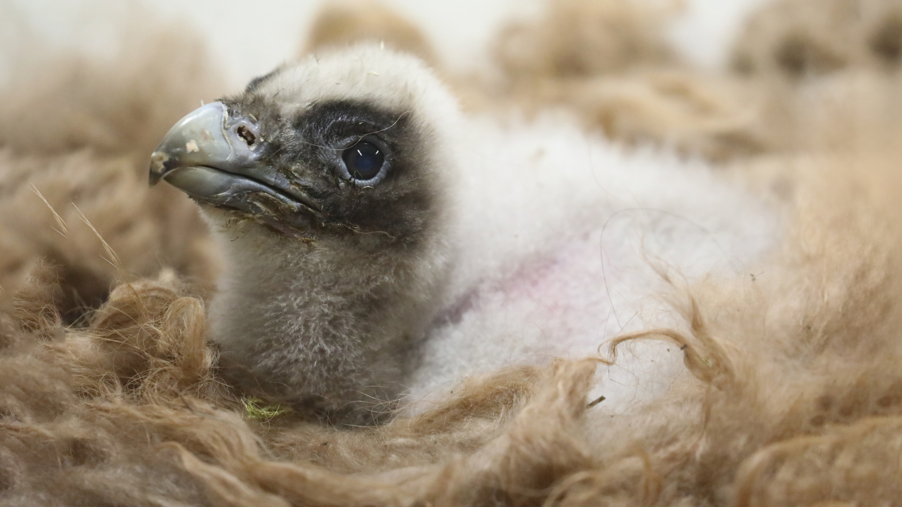The first bearded vulture chick to hatch at Prague Zoo since 2006. Still covered in down, it bears a passing resemblance to the adult. Photo: Antonín Vaidl, Prague Zoo