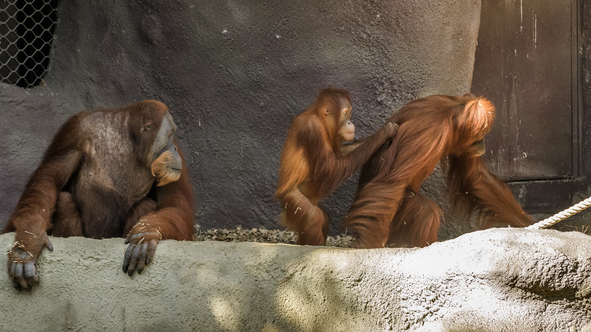 „Spojení nejdříve probíhalo ve vnitřních boxech přes mříže a za krátkou dobu byla zvířata spojena úplně. Samotné spojení zvířat proběhlo v rámci orangutaního způsobu života na výbornou, chovatelé pozorovali i pokusy o páření,“ dodal vrchní chovatel primátů David Vala.