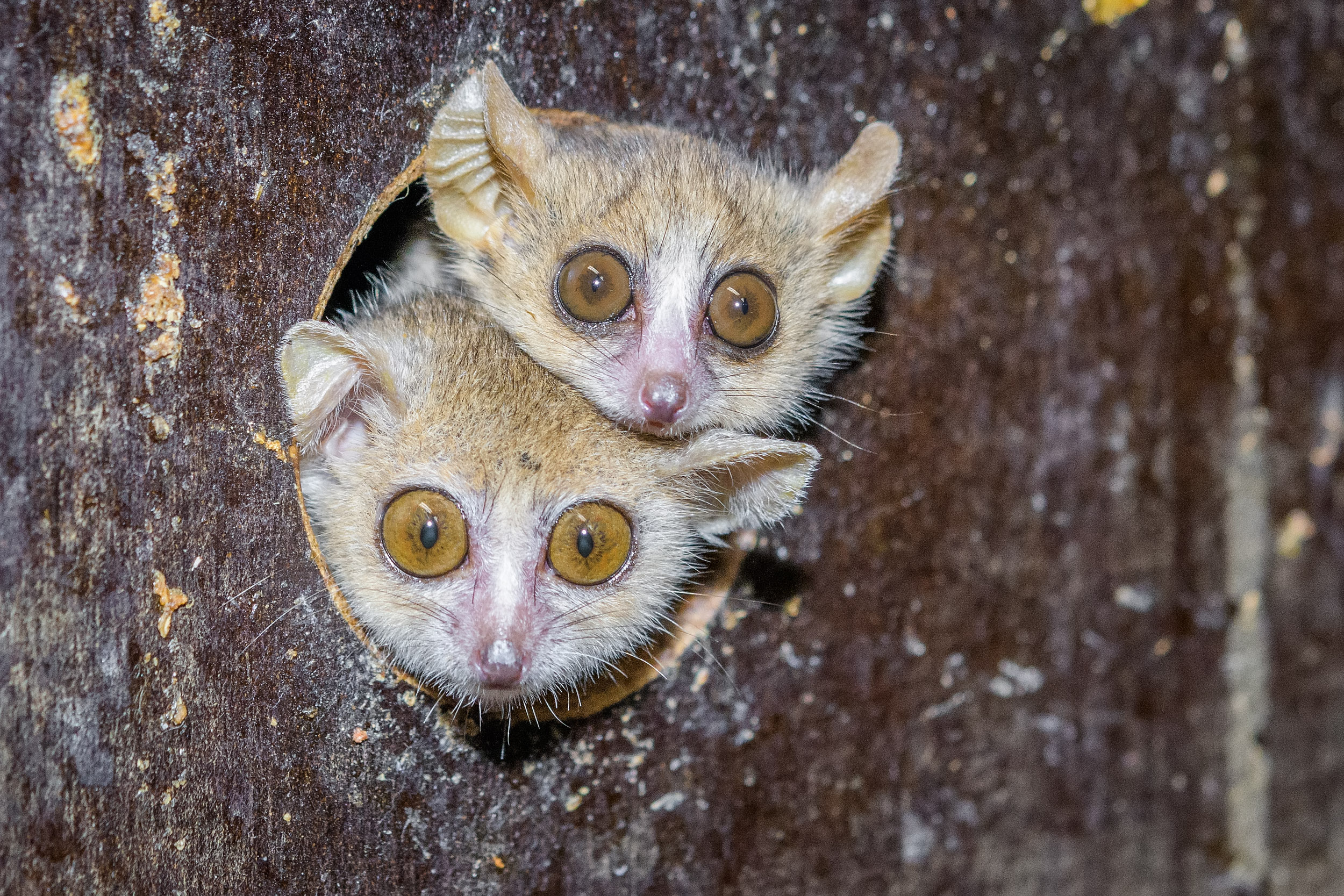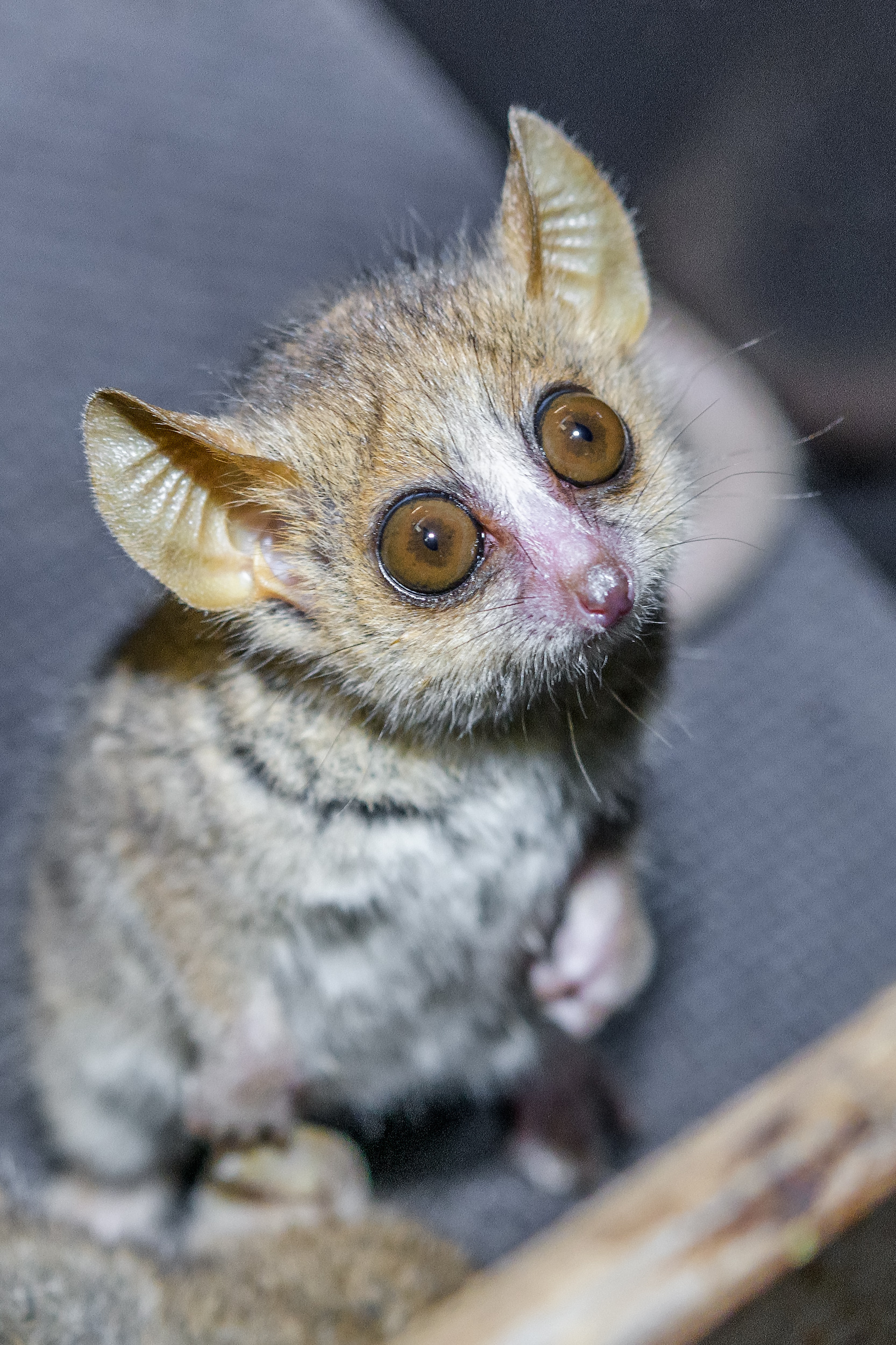 Foto 2: Makiové někdy tráví den ve stavu strnulosti, kdy klesá jejich teplota, čímž šetří energii. V pražské zoo je ovšem zastihnete akční v „noční expozici“ pavilonu Afrika zblízka. Mnoho času věnují shánění potravy. Foto: Petr Hamerník, Zoo Praha.