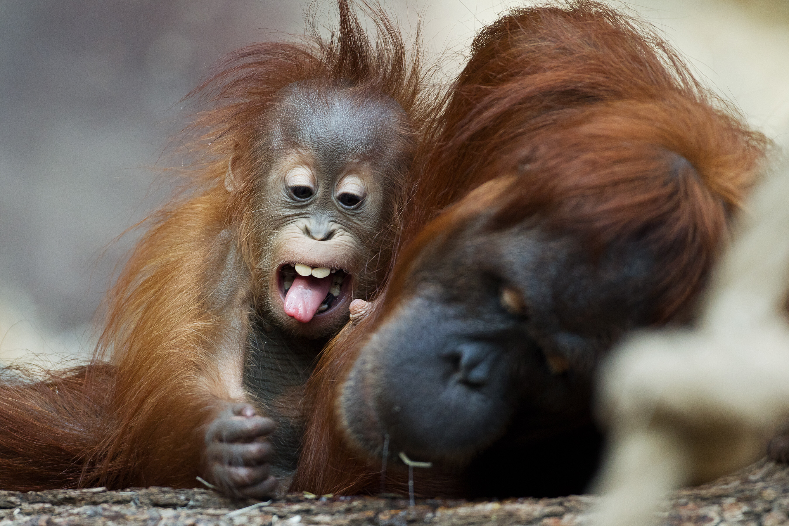 - Diri už vyrostly zuby, začíná ochutnávat pevnou potravu. Foto: Tomáš Adamec, Zoo Praha tiskovezpravy/Orangutani_mlade_Diri_foto_Tomas_Adamec.jpg