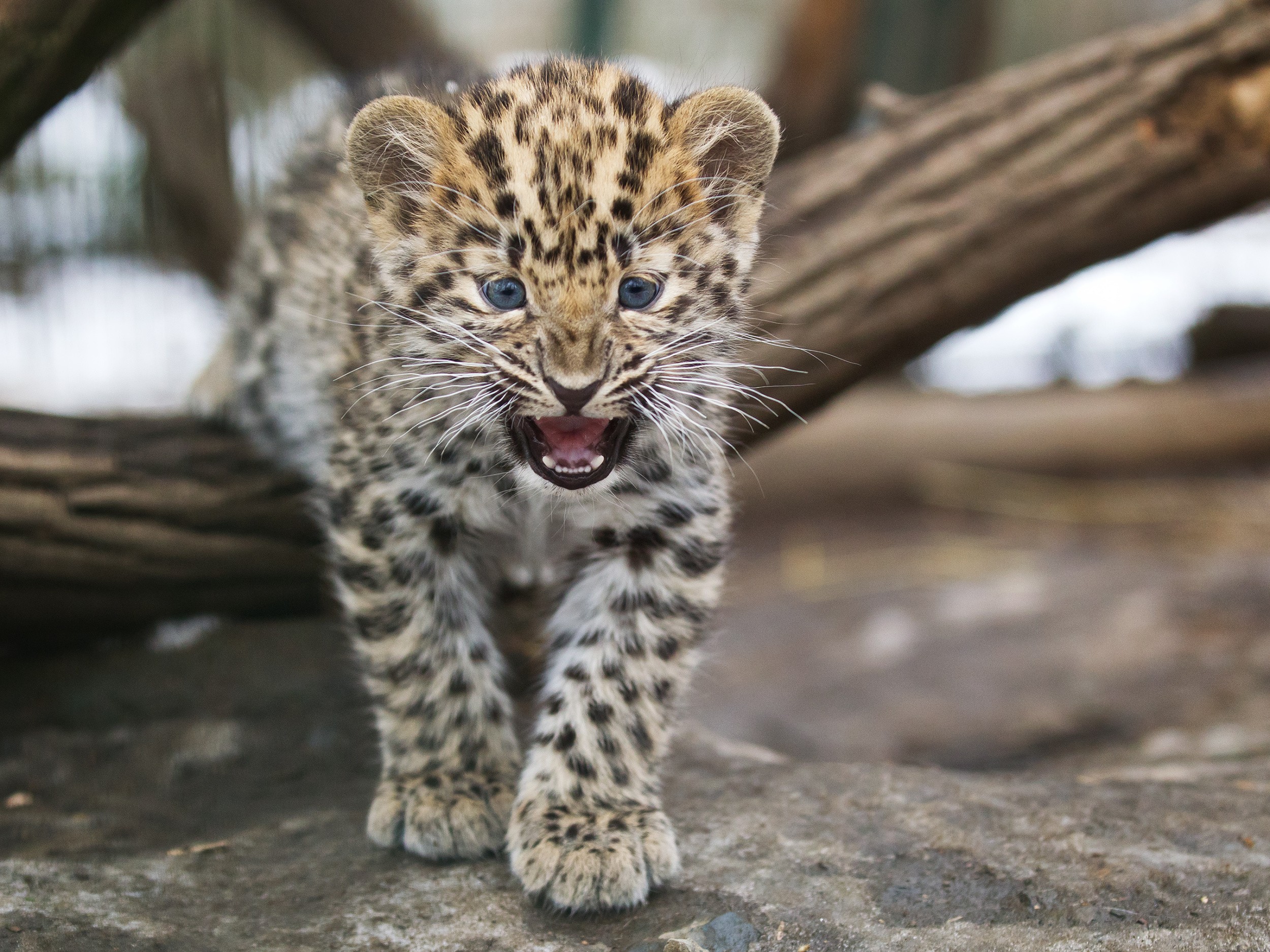 Levhartí mláďata přišla na svět na konci listopadu 2013. V lednu začala opouštět porodní box a dnes již nárazově vylézají do venkovních prostor.